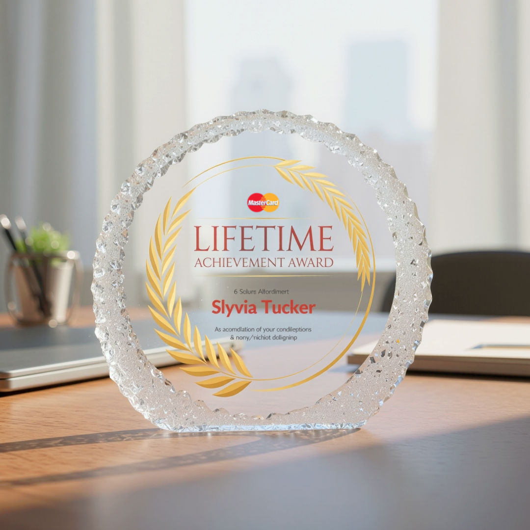 The Optical Crystal Rossini VividPrint™ Award is a striking freestanding circular award elegantly framed by a textured border of interwoven circles. Its modern design and intricate detailing make it a distinguished symbol of achievement and excellence. Enhance your artwork with full-color VividPrint™! 6.0″ W x 5.5″ H x 1.375″ D