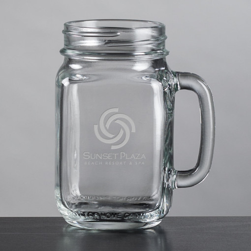 The 16oz Roswell Drinking Jar features a handle and lug finish top. A great gift idea for any occasion or catered event and a perfect way to add some flair to your signature cocktails.
