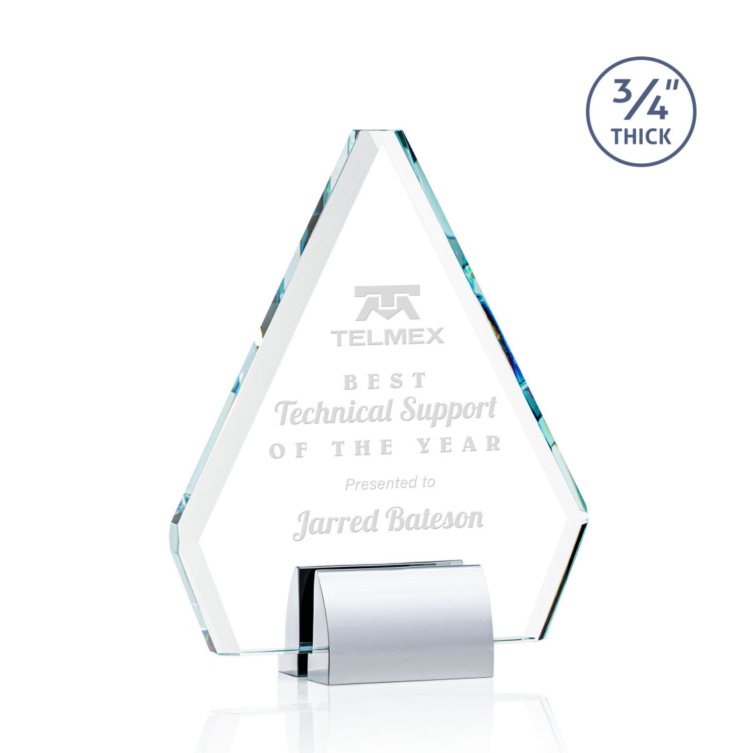 The Roxborough Diamond Award combines sparkling Starfire Crystal with a double-sided polished chrome base for an outstanding recognition piece to honor a special achievement. 6.0″ W x 7.375″ H x 0.75″ D