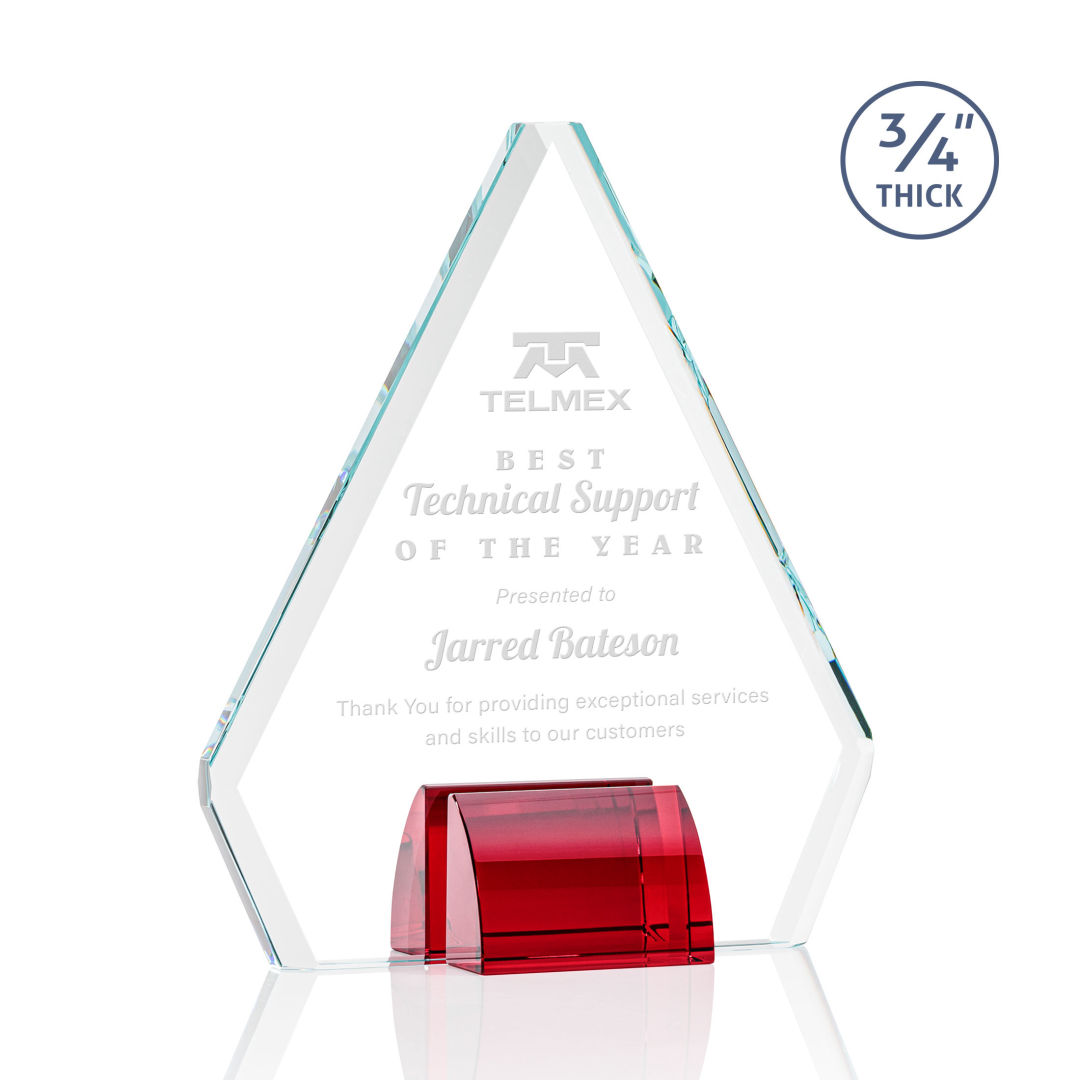 The Roxborough Diamond Award combines sparkling Starfire Crystal with a double-sided translucent ruby red crystal base for an outstanding recognition piece to honor a special achievement. 6.0″ W x 7.0″ H x 0.75″ D