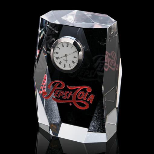 One of a set of superb, freestanding clocks in flawless optical crystal, the 3½” high Sable is a prominently beveled monolith with a silver-finished metallic quartz clock insert. The inherent sparkle of the optical crystal is enhanced by bevels on all four vertical edges, tapering from top and bottom to the midpoint. 3.5″ H