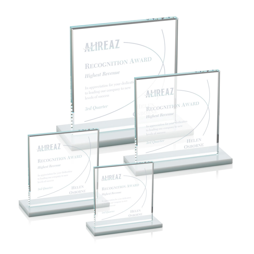 Bold Sahara Award features a 0.5″ thick Starfire crystal mounted on a vibrant flat edged colored base for a spectacular work of achievement recognition. 5.0″ W x 4.375″ H x 3.0″ D