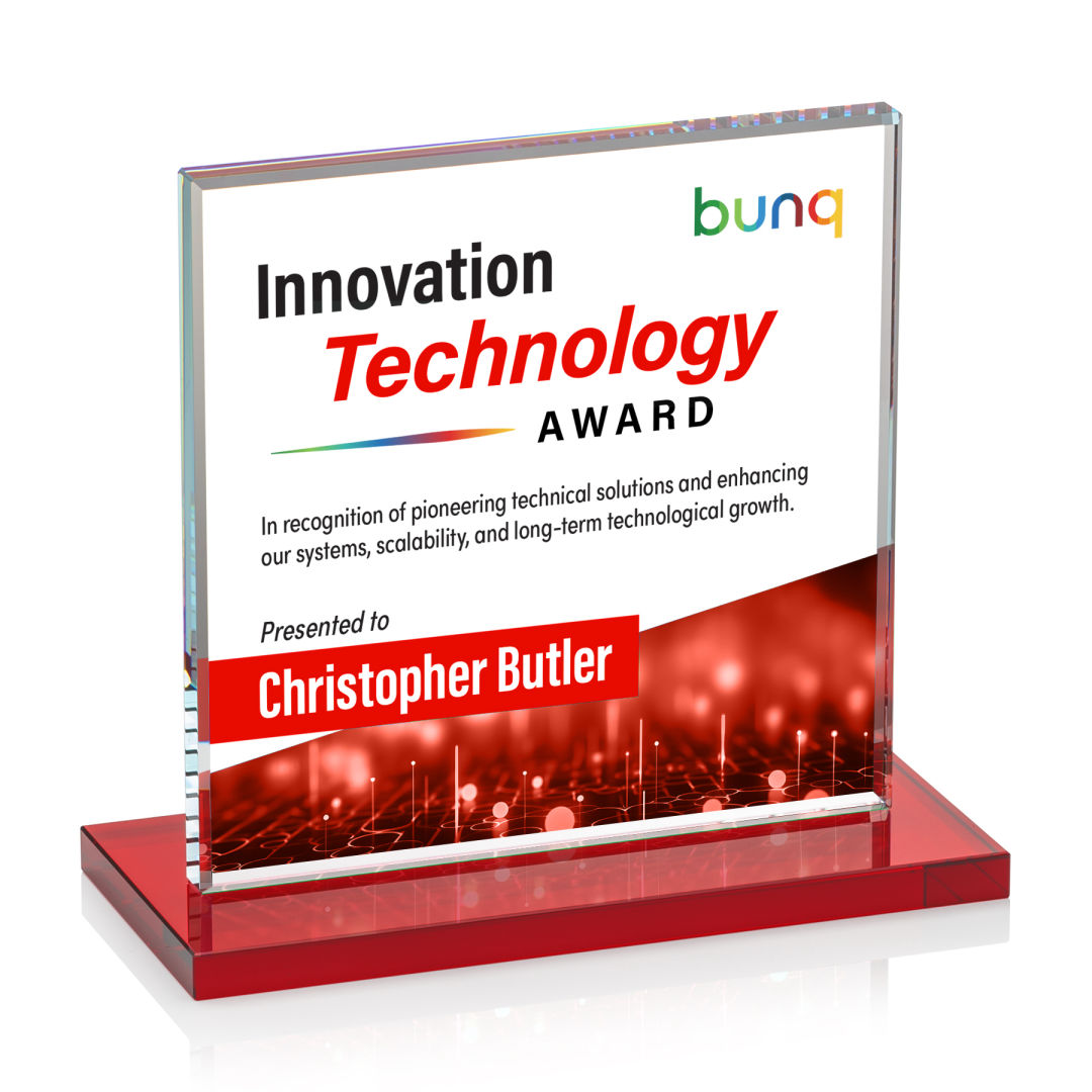 Bold Sahara VividPrint™ Award features a 0.5″ thick Starfire crystal mounted on a vibrant flat-edged base for a spectacular work of achievement recognition. Bring your artwork to life with full-color VividPrint™! 5.0″ W x 4.375″ H x 3.0″ D