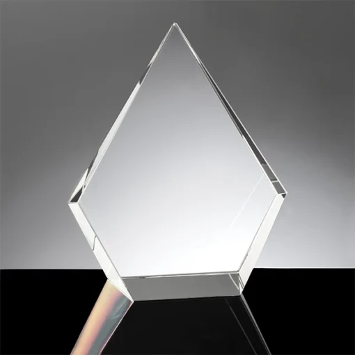 The Saks Diamond with its sharp modern lines is manufactured from the finest quality K9 Optic Crystal. This free standing Diamond’s front face is tapered from the bottom to the top. The Saks Diamond comes in a premium quality presentation box. It is available as a blank for engravers, or if you prefer we can do the engraving for you. 6.7″ L x 2.5″ W x 8.1″ H