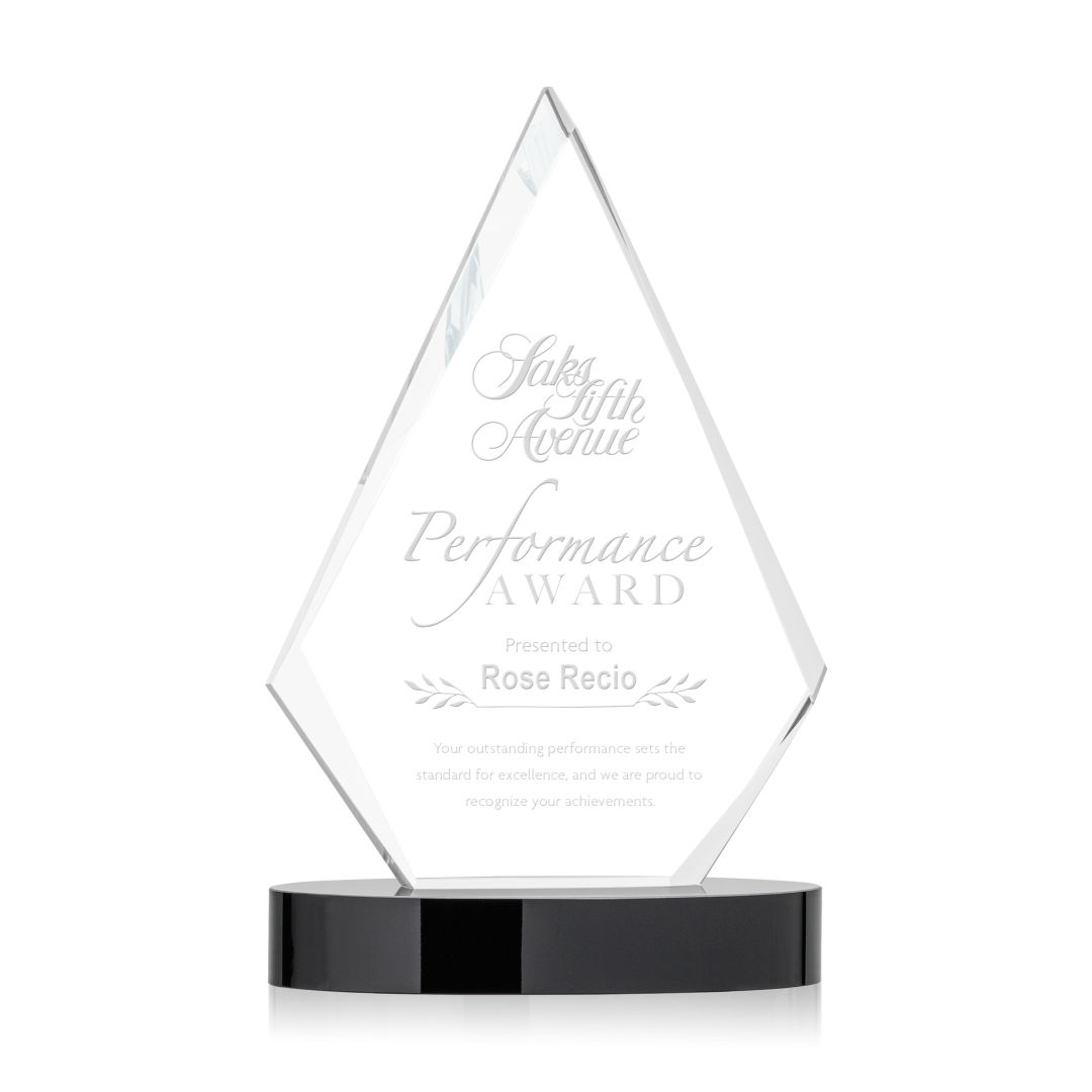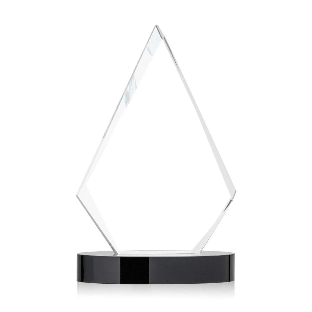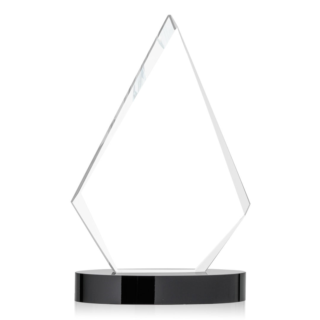 The Starfire Crystal Sarasota Award is a magnificent diamond shape with tapered beveled edges that adds a touch of elegance and beautifully frames your words of recognition. Comes complete with your choice of an ebony or sapphire Starfire Crystal base. Packaged in a black satin-lined presentation gift box. 4.75″ W x 7.0″ H x 2.25″ D