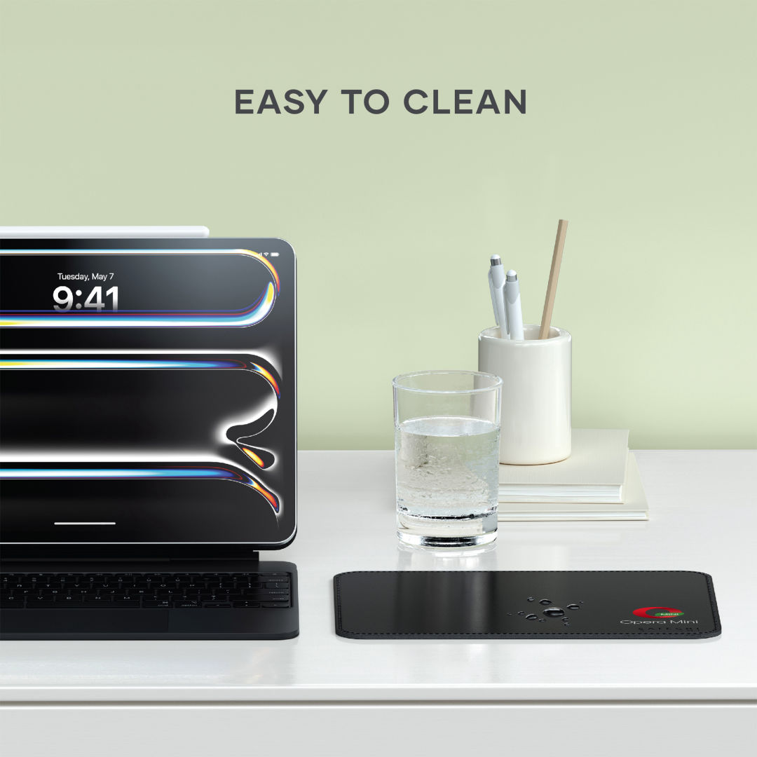 The Vegan-Leather Premium Mouse Pad, a sleek addition to any desk setup. Designed for effortless gliding, it boasts a smooth surface that enhances comfort and productivity. Available in Black, Brown, and Blue. Features: – Durable fabric- Smooth gliding surface- Water resistantProduct Size: 9.8″ W x 7.5″ H x 0.125″D. 9.8″ W x 7.5″ H x 0.125″ D