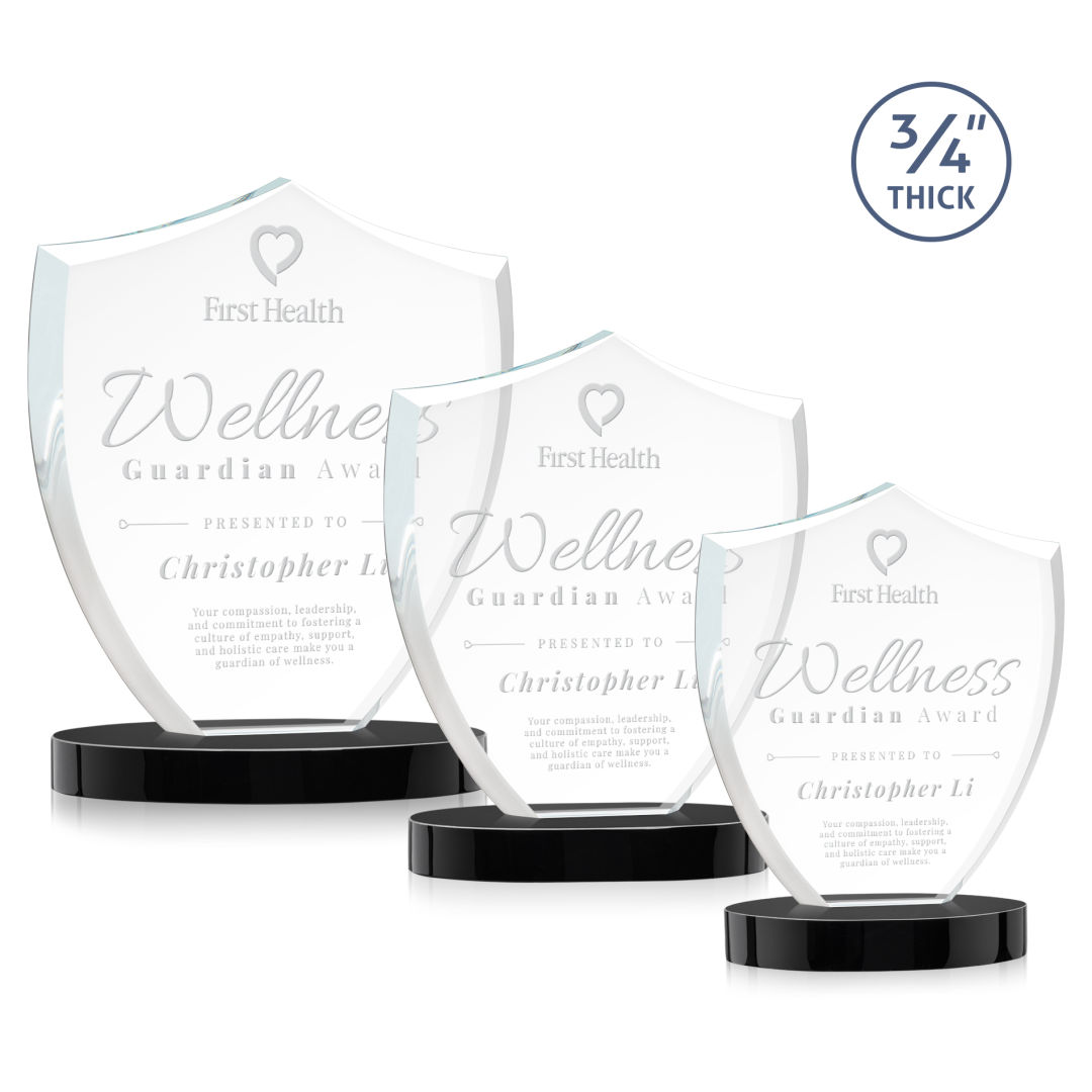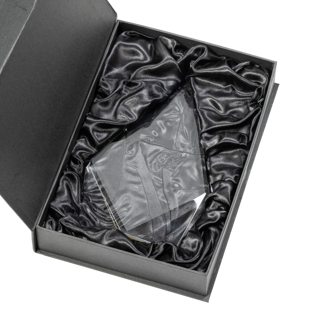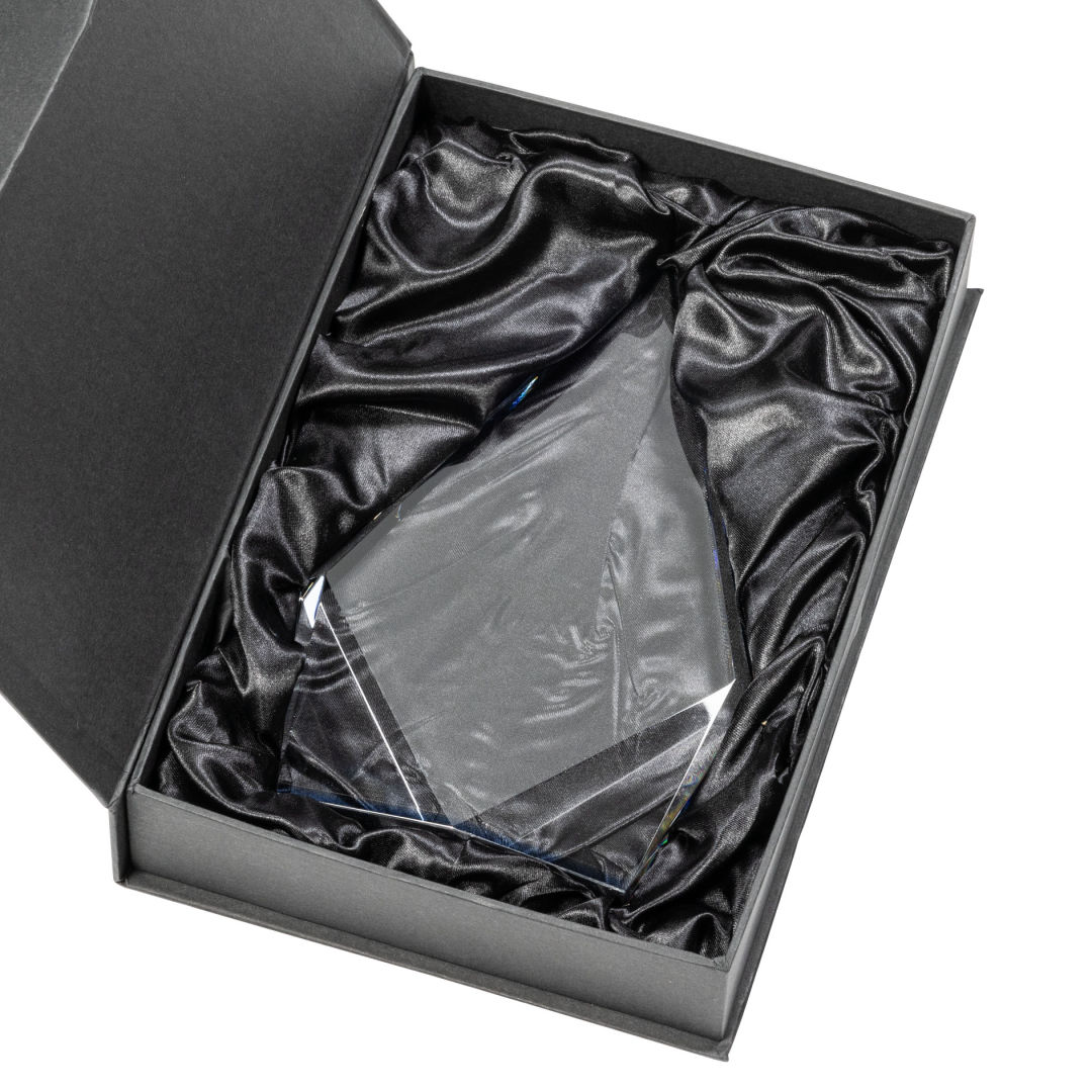 A shield signifies protection, authority, and stability, making the Scudo Shield Award suitable for recognizing outstanding excellence for first responders and law enforcement. This Starfire Crystal Award features beveled edges and is mounted on an oval optical crystal base. 6.25″ W x 8.0″ H x 2.75″ D