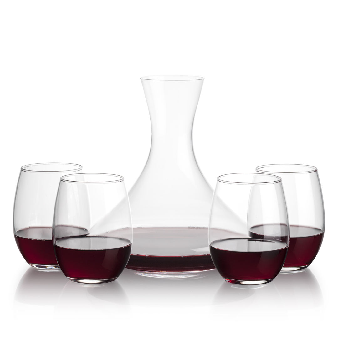 Contemporary Carafe set. Elegant and sophisticated, a great gift for any occasion.Includes 48oz Senderwood Carafe with your choice of 2 or 4 15oz Standford wine glasses.