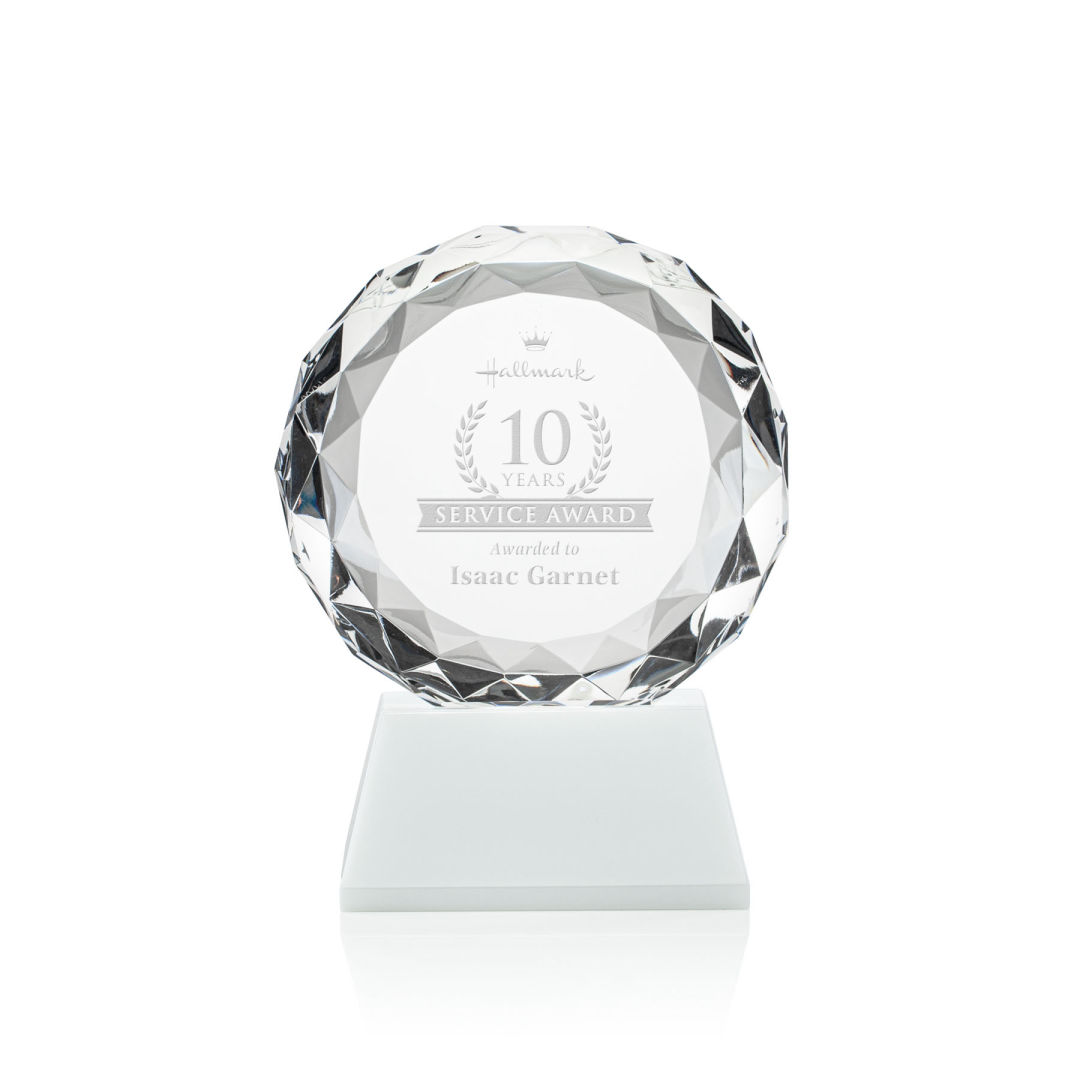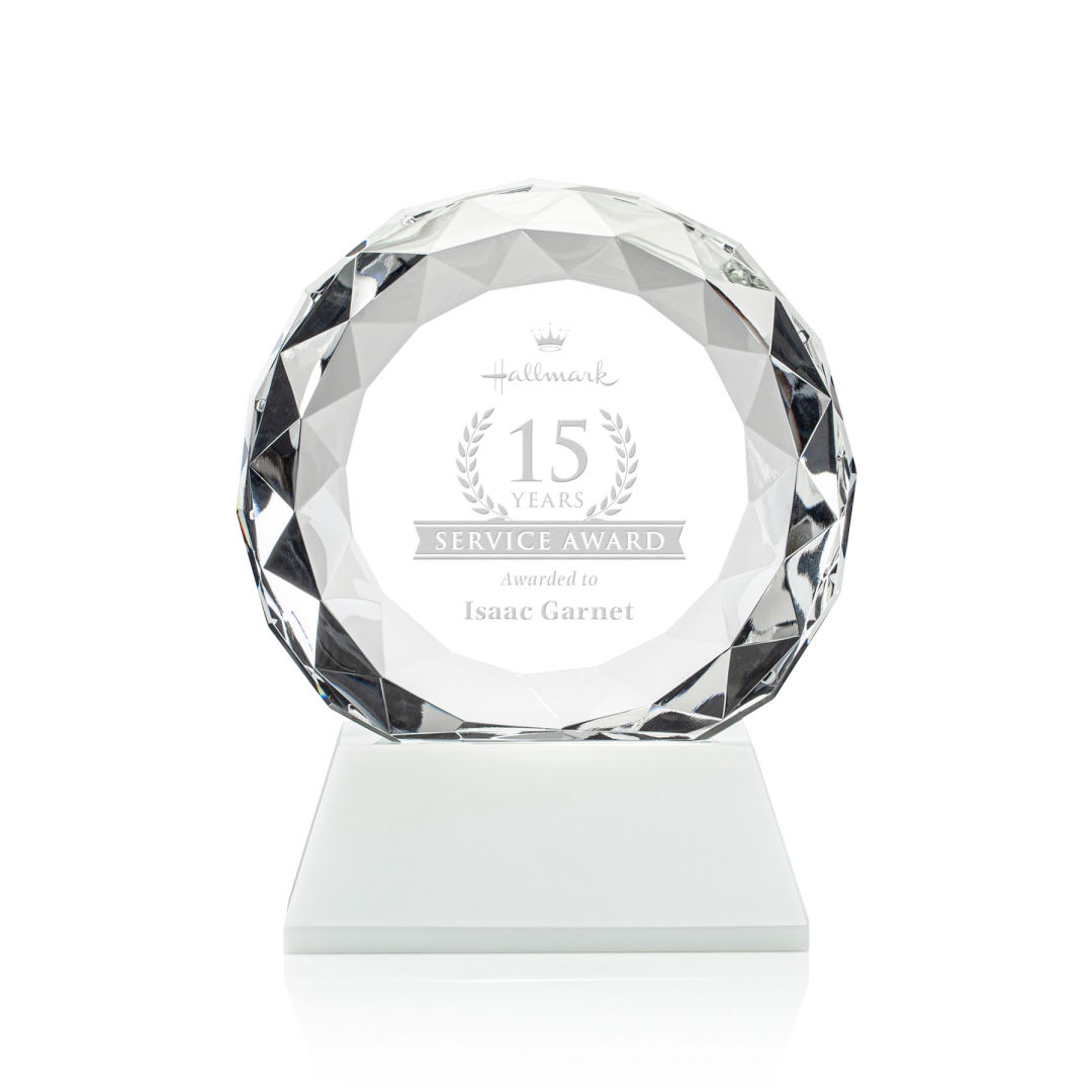 The spectacular Optical Crystal Seville is a stunning diamond shaped award. Your inspirational success is framed by sparkling facets, creating a spectacle of light to highlight your well deserved recognition. Mounted on a tall solid optical ivory base. Second Position Etch & Colorfill optional. 4.0″ W x 5.75″ H x 2.375″ D
