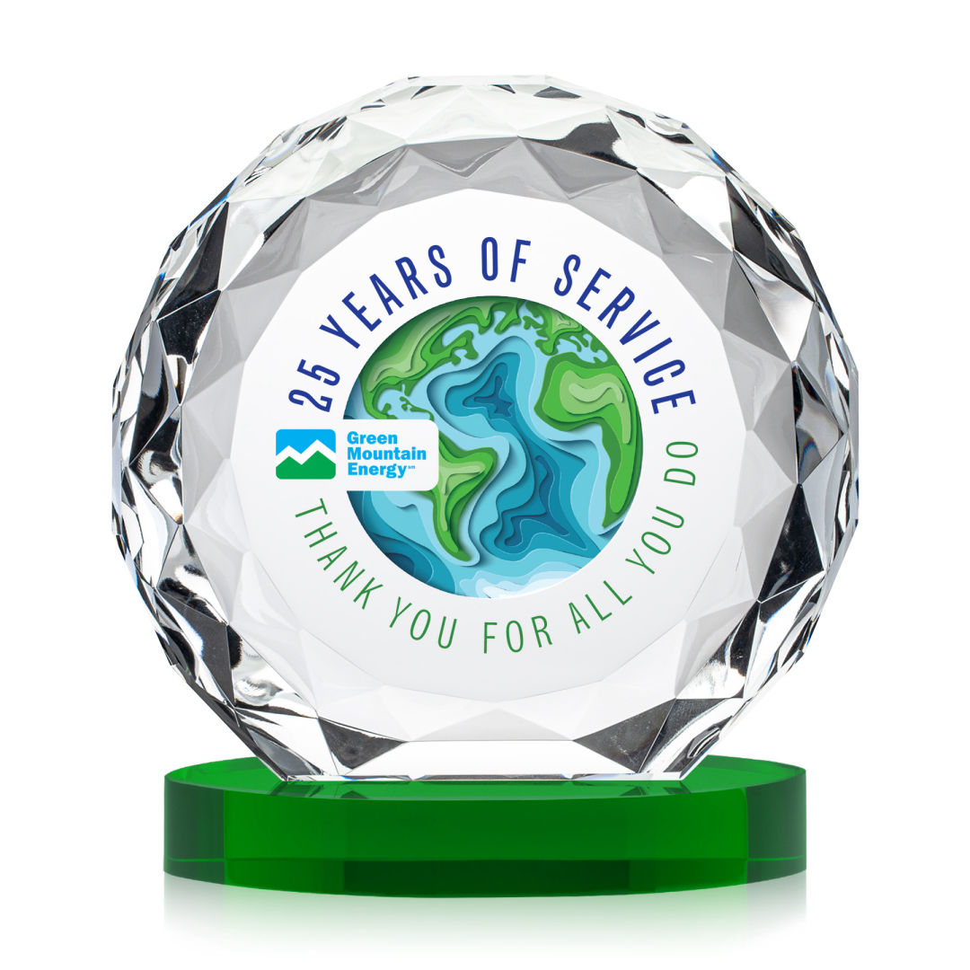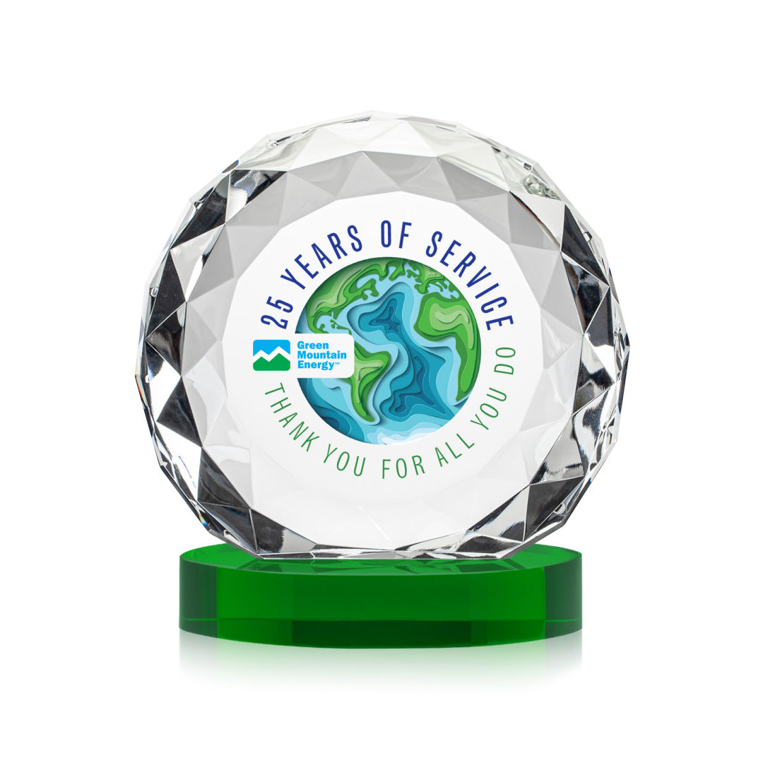 The VividPrint™ Seville on Alberton Base combines the elegance of the gem-cut Seville Award with the bold presence of a solid crystal base. Its oval-shaped base supports the faceted round award with vibrant reflections that enhance its brilliance. Perfect for milestones, achievements, or recognition, this piece delivers a striking balance of sophistication and impact. Bring your design to life with brilliant full-color VividPrint™, adding depth and vibrancy to every detail of your artwork. 4.0″ W x 4.75″ H x 2.25″ D