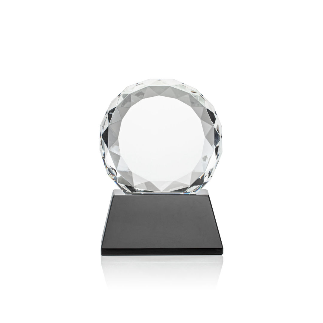 The spectacular Optical Crystal Seville is a stunning diamond shaped award. Your inspirational success is framed by sparkling facets, creating a spectacle of light to highlight your well deserved recognition. Mounted on a tall ebony optical base. Second Position VividPrint™ Optional. 4.0″ W x 5.75″ H x 2.375″ D