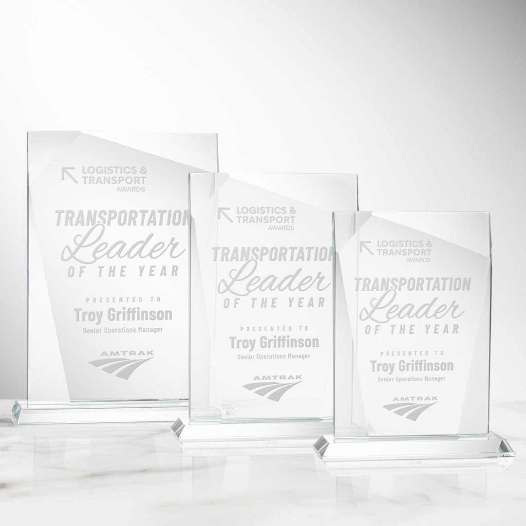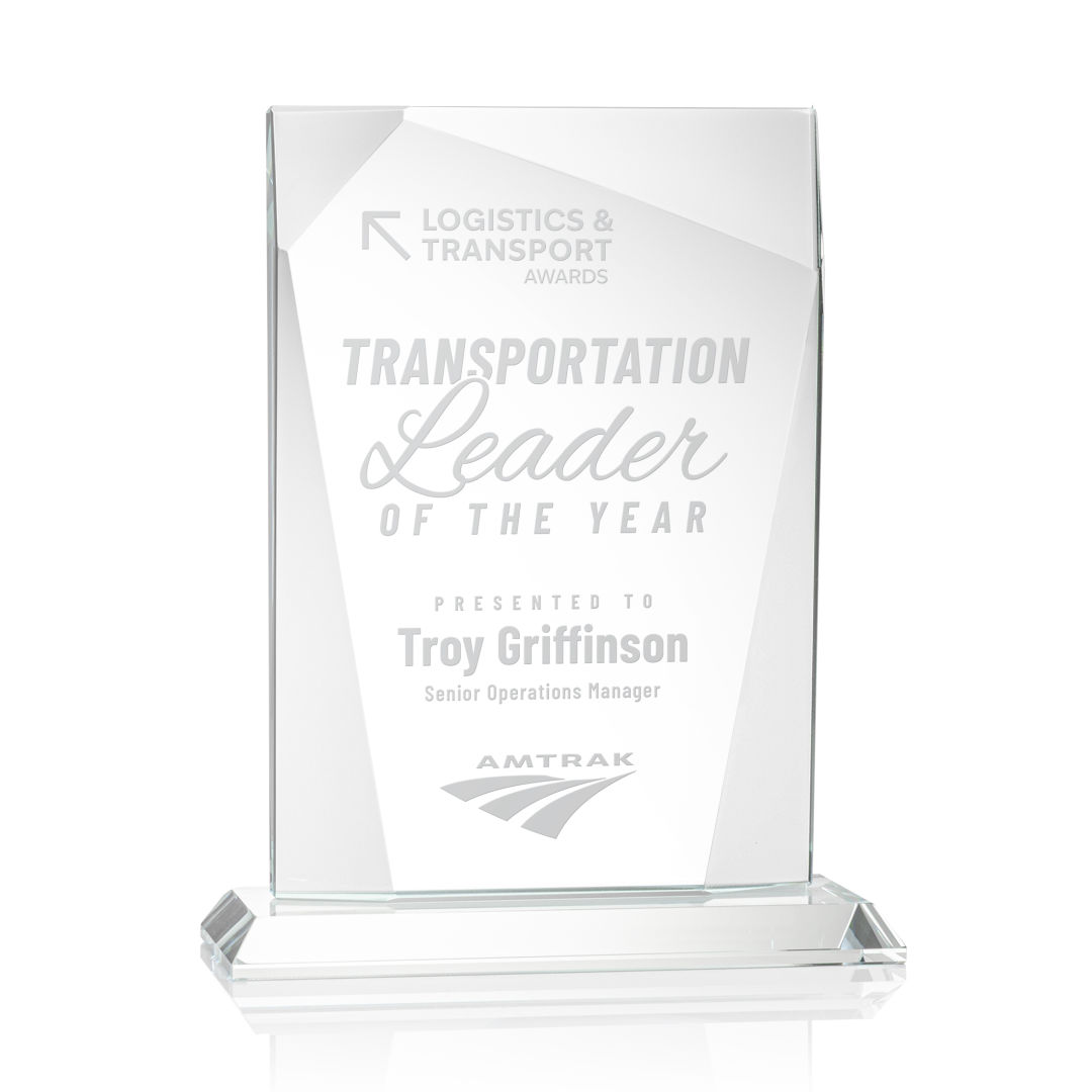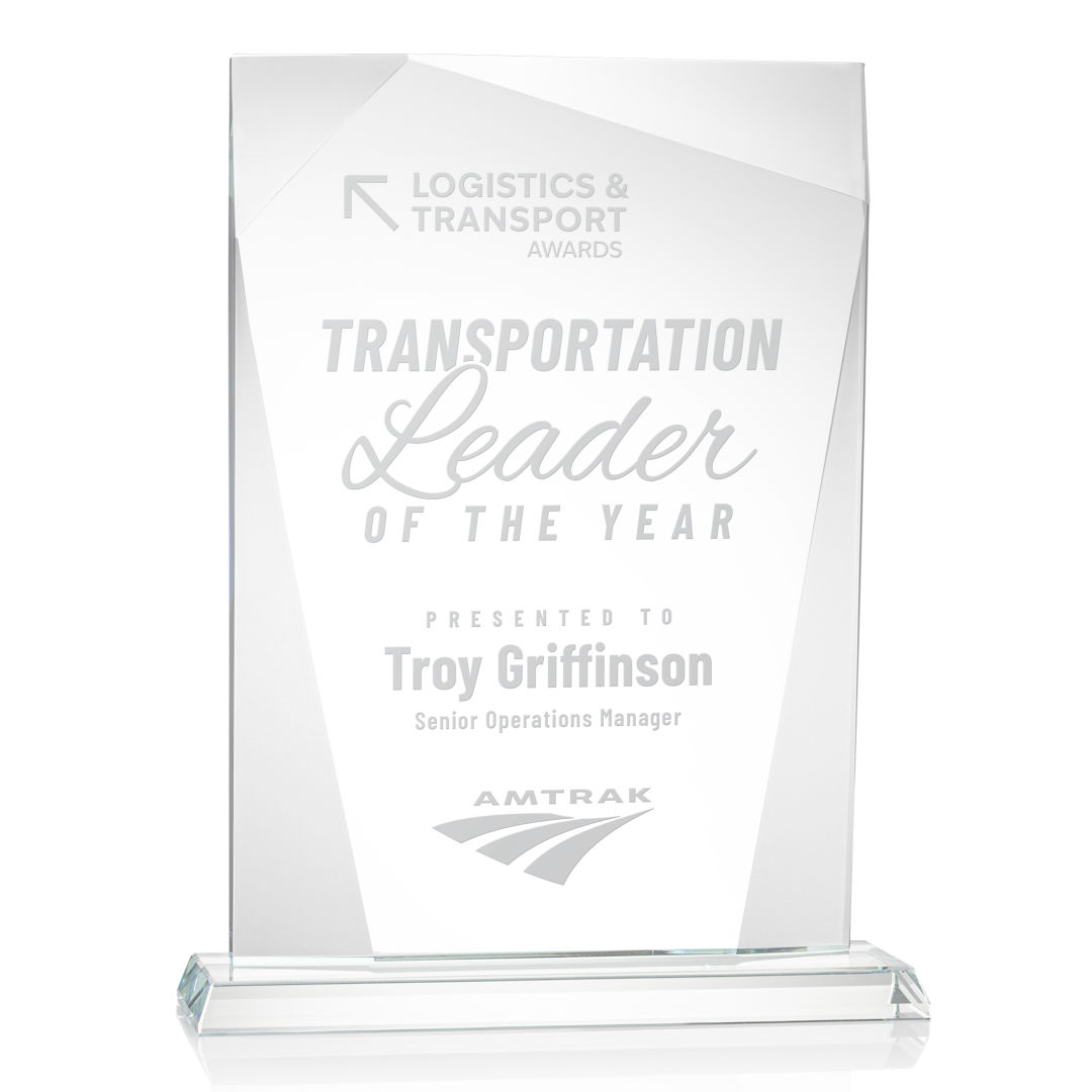 The ¾” thick Shamrock is a tall Starfire Crystal rectangular award that features geometric bevels throughout the perimeter of the imprinting area, creating a curtain effect that perfectly outlines your recognition message. 6.5″ W x 8.25″ H x 2.0″ D