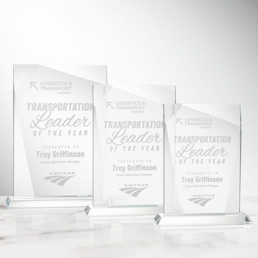 The ¾” thick Shamrock is a tall Starfire Crystal rectangular award that features geometric bevels throughout the perimeter of the imprinting area, creating a curtain effect that perfectly outlines your recognition message. 6.5″ W x 8.25″ H x 2.0″ D