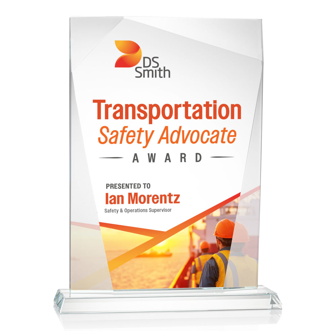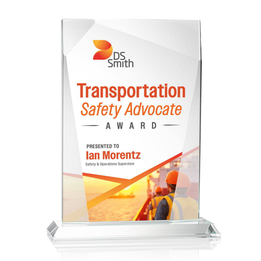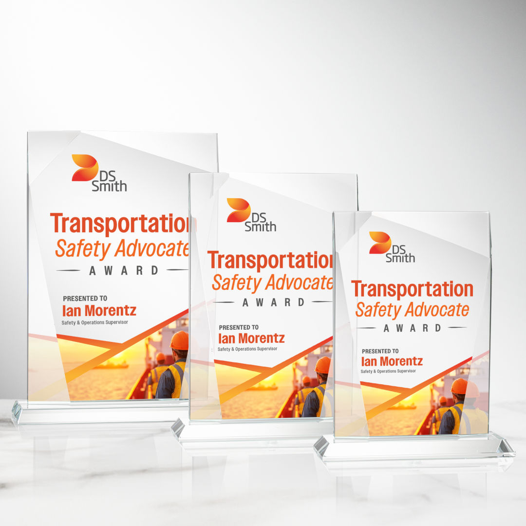 The ¾” thick Shamrock VividPrint™ Award is a tall Starfire Crystal rectangular award that features geometric bevels throughout the perimeter of the imprinting area, creating a curtain effect that perfectly outlines your recognition message. Bring your artwork to life with full-color VividPrint™! 6.5″ W x 8.25″ H x 2.0″ D
