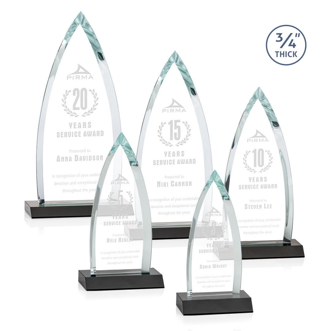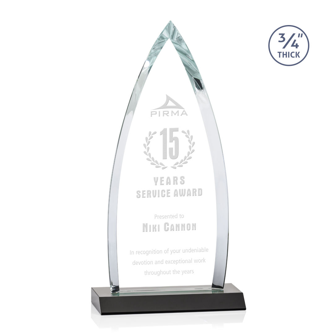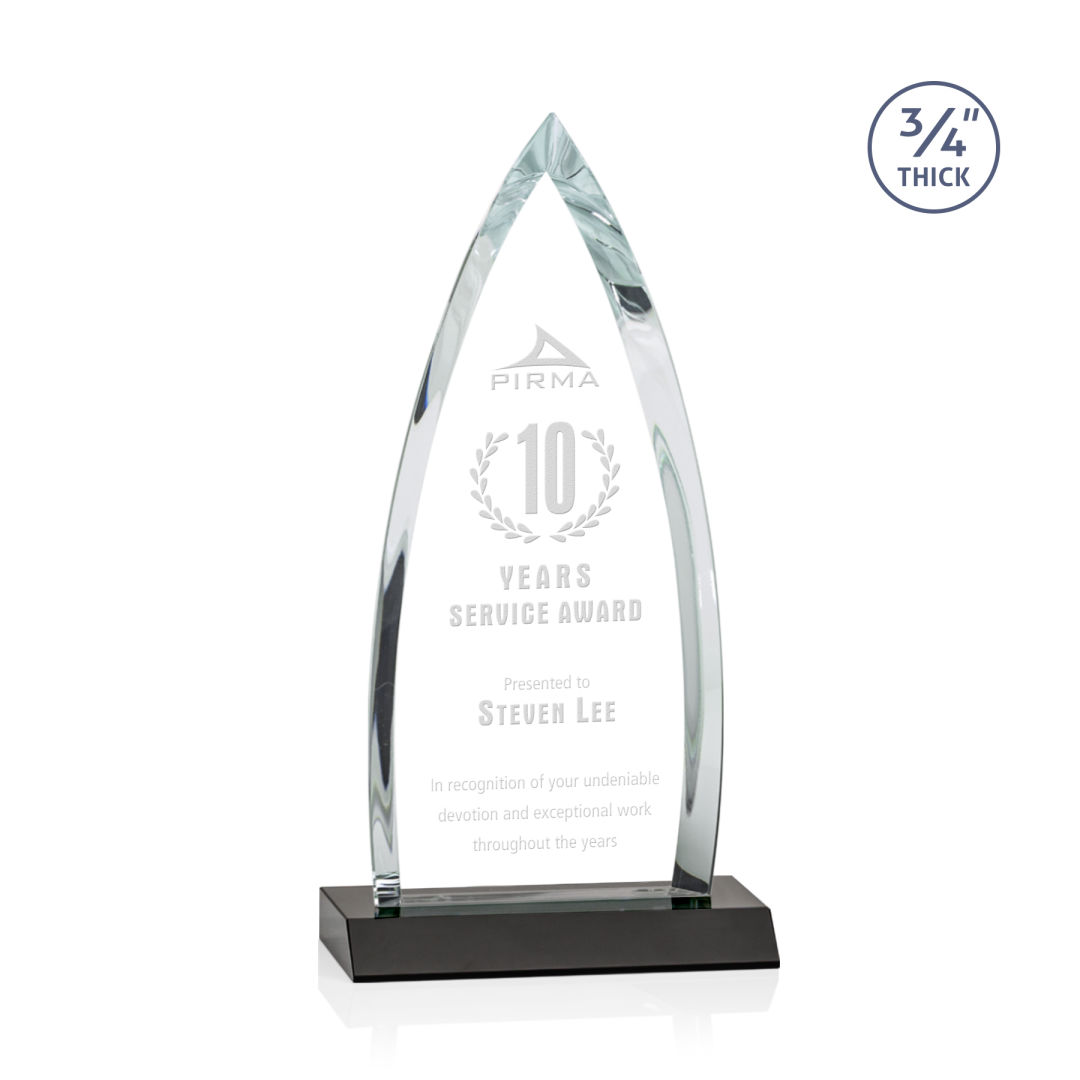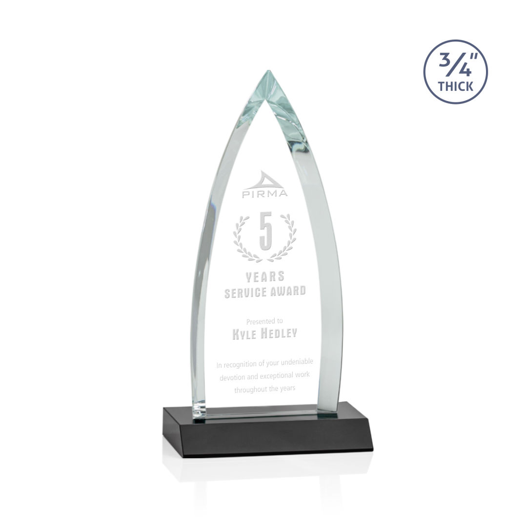 The striking Shildon Award is a 3/4″ thick Starfire arrowhead with deep dramatic bevels to recognize a spectacular achievement. Mounted on an ebony crystal base. Second position etch optional. 4.0″ W x 7.75″ H x 3.0″ D