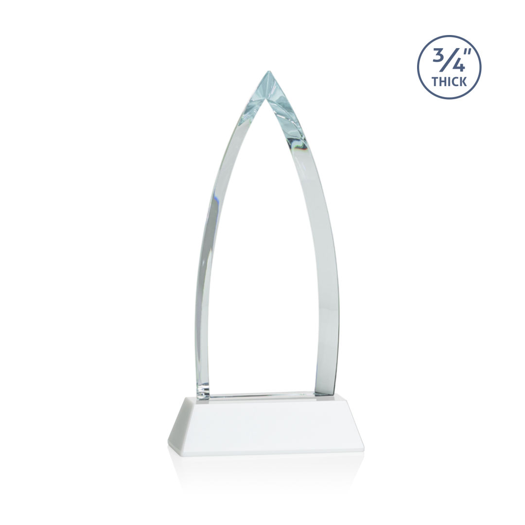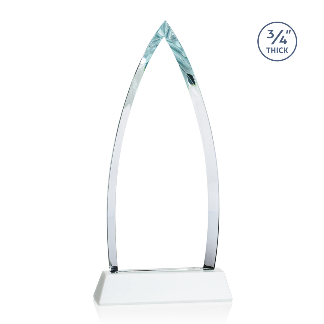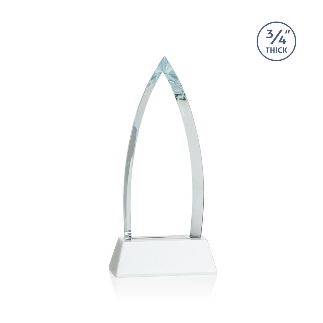The striking Shildon Award is a 3/4″ thick Starfire arrowhead with deep dramatic bevels to recognize a spectacular achievement. Mounted on a thick ivory crystal base and includes full-color VividPrint™. Second position etch optional. 4.0″ W x 8.5″ H x 2.0″ D