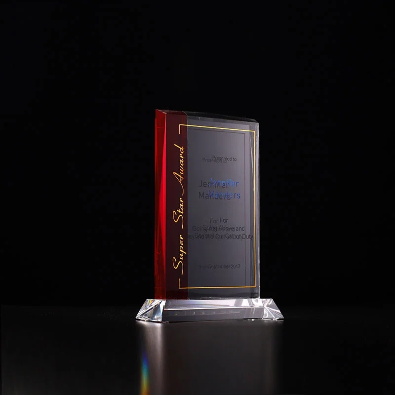 The Soleil is a stunning combination of Clear and Ruby Red Optic Crystal bonded seamlessly to create this one of a kind award. This award is perfect for abrasive etching and color fill. Each is shipped in a premium quality presentation box. 5.3″ W x 7.1″ H x 0.6″ D