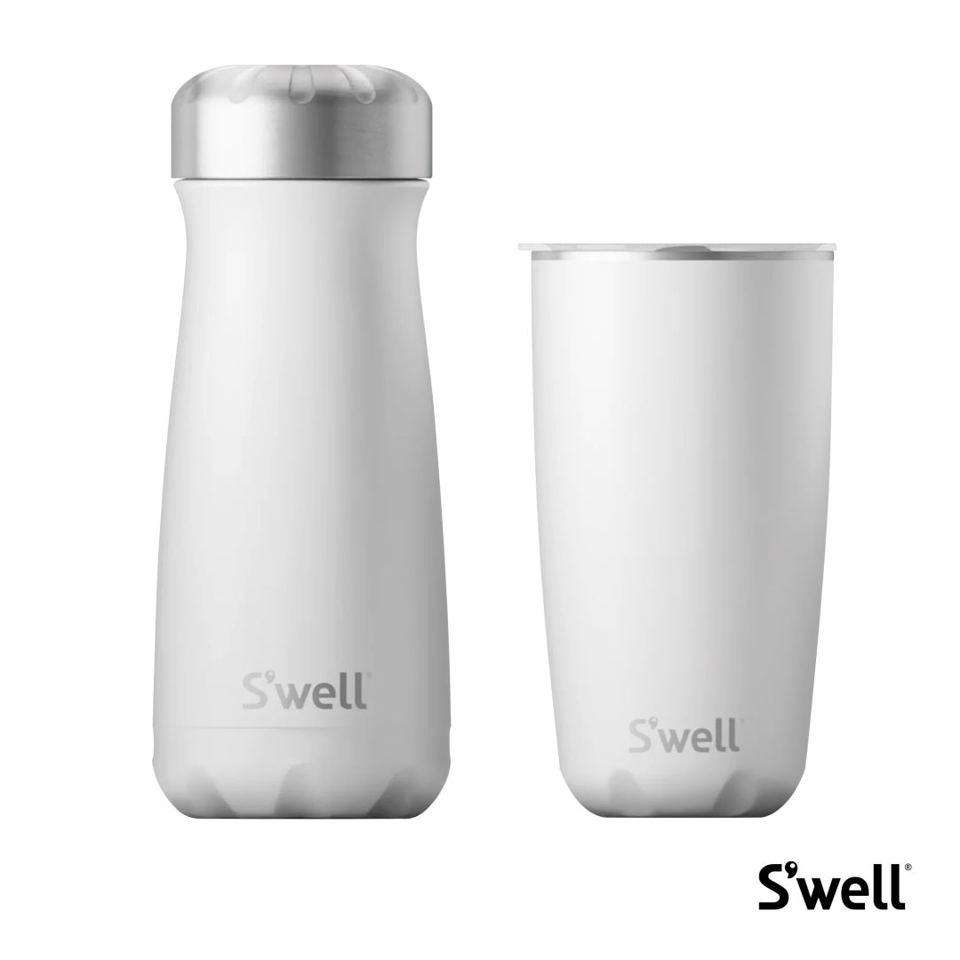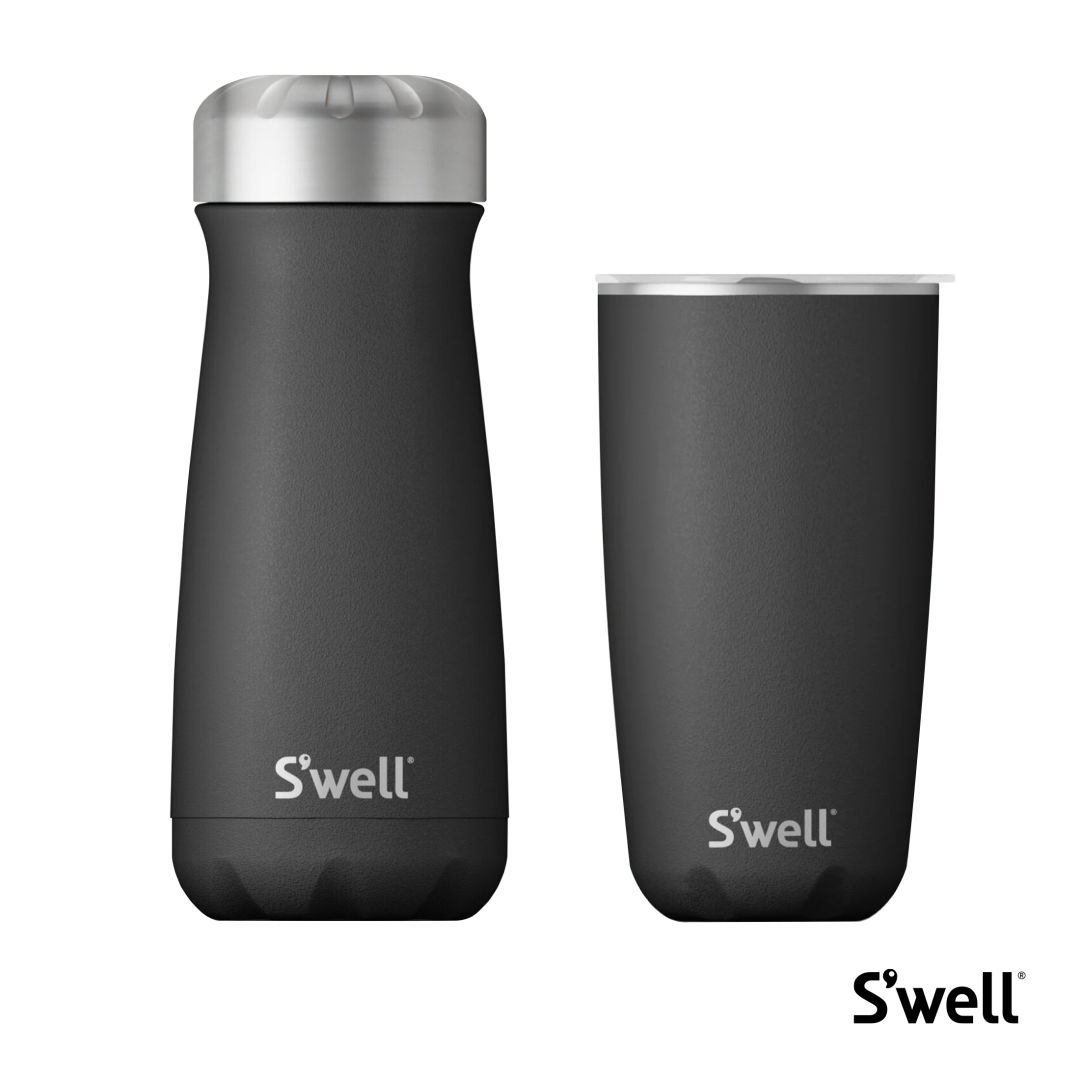 The S’well Start Onboarding Set is a sleek and sustainable way to welcome new team members with everyday hydration essentials. It features the S’well® Tumbler with Lid – 18oz for sipping at the desk or on the go, and the S’well® Traveler Insulated Bottle – 16oz, perfect for keeping drinks hot or cold for hours. With modern design and high-performance insulation, this set brings both style and function to every workday.