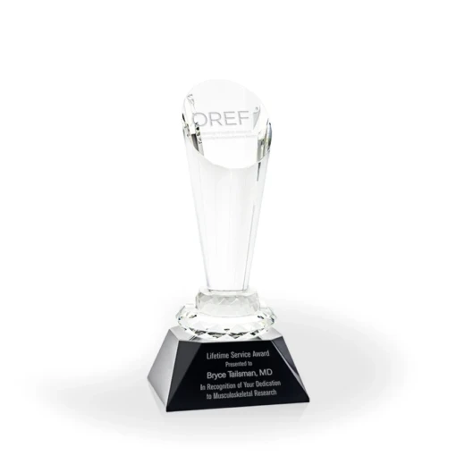 The Titan Crystal Awards are beautifully multi-faceted optic crystal pieces that will catch and reflect light from all angles. This is a great option when you want to present an award that will make a huge impression on your recipient. The angled top is highly polished to create a perfect engraving location for your logo and message. 10″ H x 4.5″ W x 4.5″ D