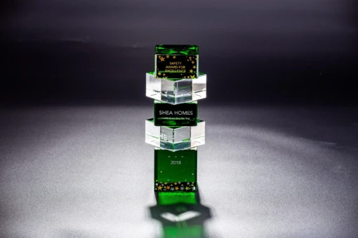 The Twilear Crystal Green Award Circle with it’s alternating green and clear Optic Crystal cubes all perfectly bonded together is an eye catching design. It is shipped in a premium quality presentation box. These awards are available as a blank for engravers, or if you prefer we can do the engraving for you. 2″ L x 2″ W x 6.9″ H