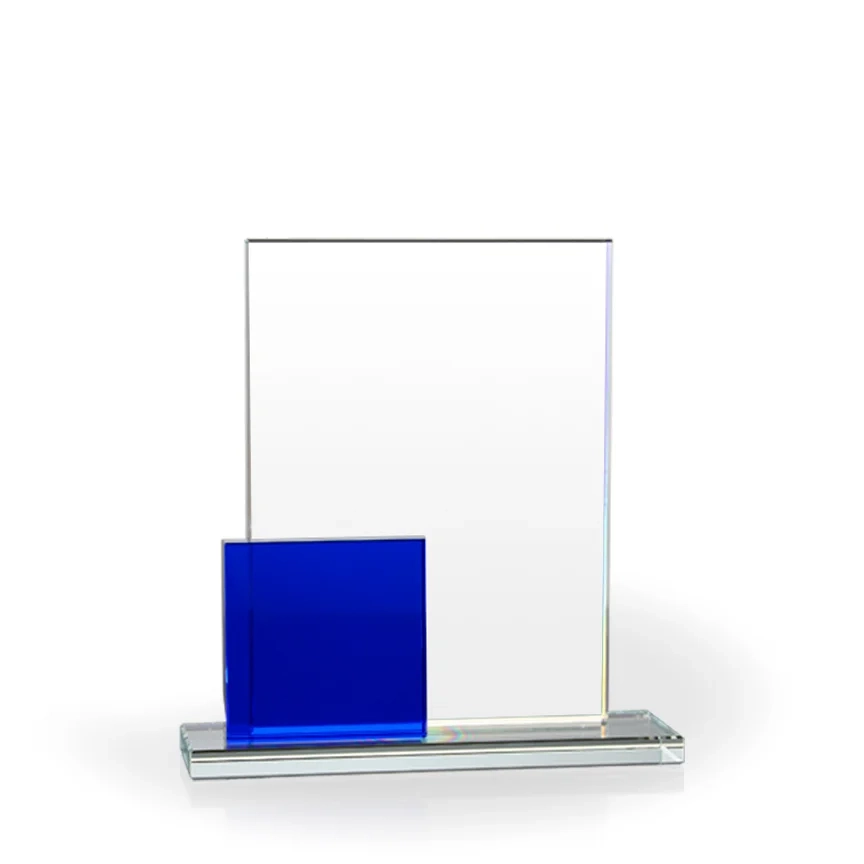 The Verve Blue Square Glass Award is a gorgeous piece made of highly polished clear glass components with a blue square accent. This is very popular award for many awards programs and is an Awarding You exclusive. The square component is approximately 4″ square and works well for logos, product names, award names, or other elements. It is also possible to color fill on either of the components. The Verve Blue Square Award is very popular for Sales Awards, Customer Service Awards, Department Awards, Thank You Gifts and Management Awards. 8″ H x 8″ W x 2 1/2″ D