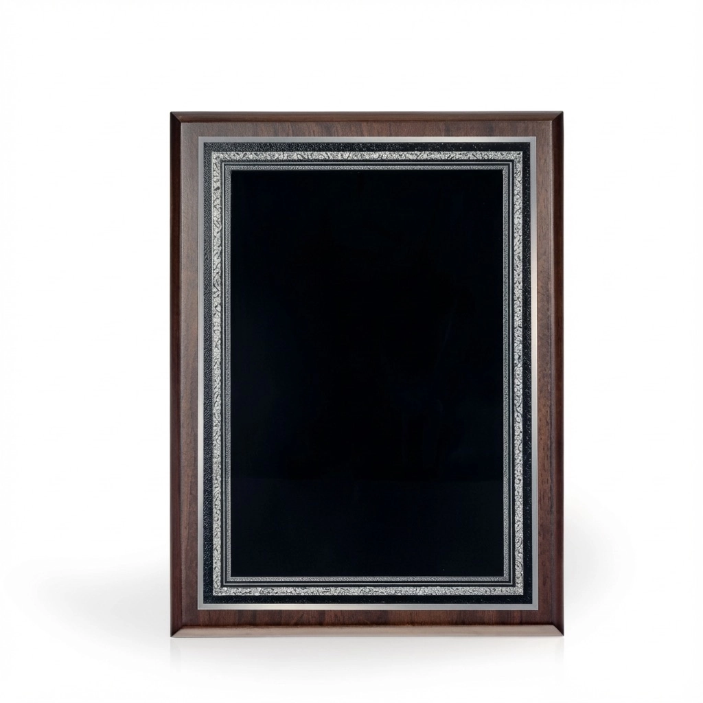The Weber Walnut Plaque features a solid walnut plaque board, and black plate that engraves to silver colored letters. The black plate comes with a nicely detailed border which is an attractive detail to compliment your engraved logo and text. This plaque comes in 2 sizes making it a wonderful option when you need multiple sizes of an award. These plaques can be hung vertically or horizontally (keyhole on the back side). 10″ H x 8″ W x 0.5″ D