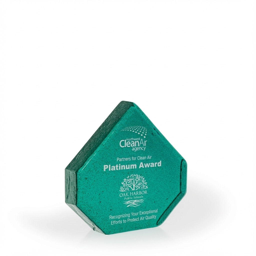 Elevate your recognition program with the Weddell Teal Pinnacle, a distinctive 6-inch award that seamlessly blends modern elegance with environmental responsibility. Each piece is meticulously crafted from recycled glass, showcasing a captivating teal hue that shimmers with depth and sophistication. The unique pinnacle design, soaring upwards, symbolizes aspiration and achievement, making it a powerful and memorable token of accomplishment for any recipient.