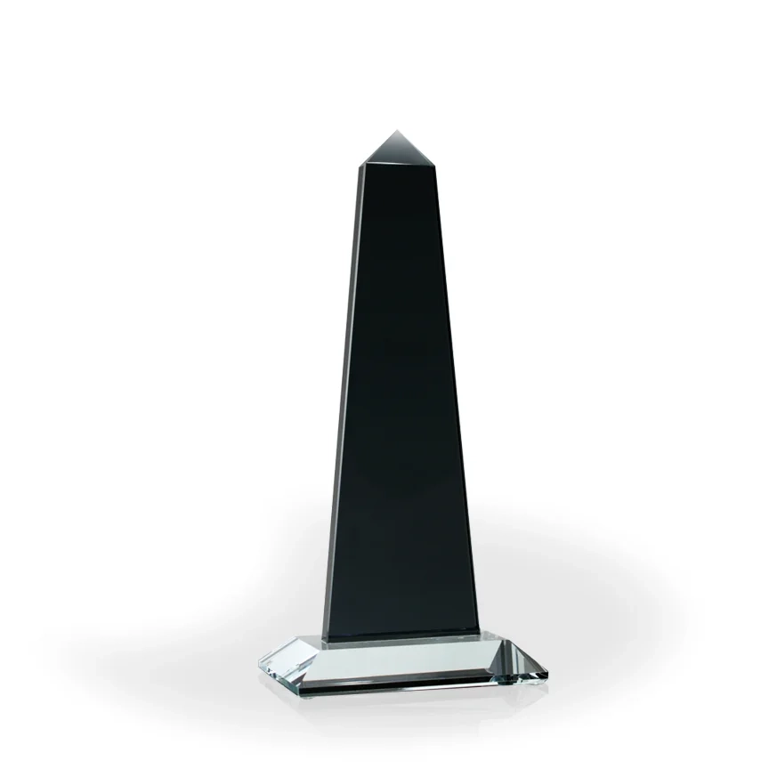 The stately Willow Crystal Tower Award is a grand way to recognize teammates or employees for sales or leadership achievements. This award starts blank, and we engrave your logo, recipient information and date on the front of the elegant black crystal. The Willow Crystal Tower Award stands at an impressive 11″ in height, on top of a brilliant clear crystal base, and features a pyramid cut at the top of a tapering column of black hued crystal. 11″ H x 5″ W x 3″ D
