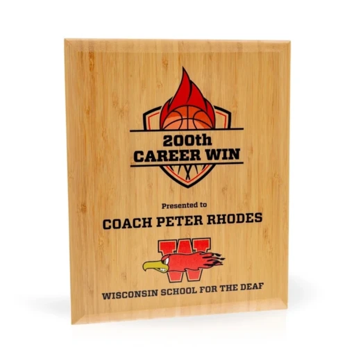 The Zen Bamboo Plaque Series is available in 3 sizes. The natural quality of the bamboo material is made elegant with the addition of a rounded eliptical edge. Each board is hand crafted lending a uniqueness to the texture and overall look. The front of each plaque allows for branding and award information to be printed in stunning color. A great choice for recognizing all level of achievement and for your award programs. 13″ H x 10.5″ W x 0.75″ D