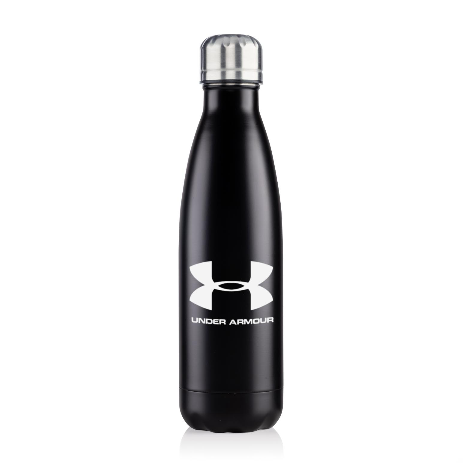 - Single wall stainless steel water bottle - Ergonomically curved shape fits in most standard cup holders - Twist locking mechanism for leak-proof hydration on the go - Keeps your drinks cold - Metallic color finish