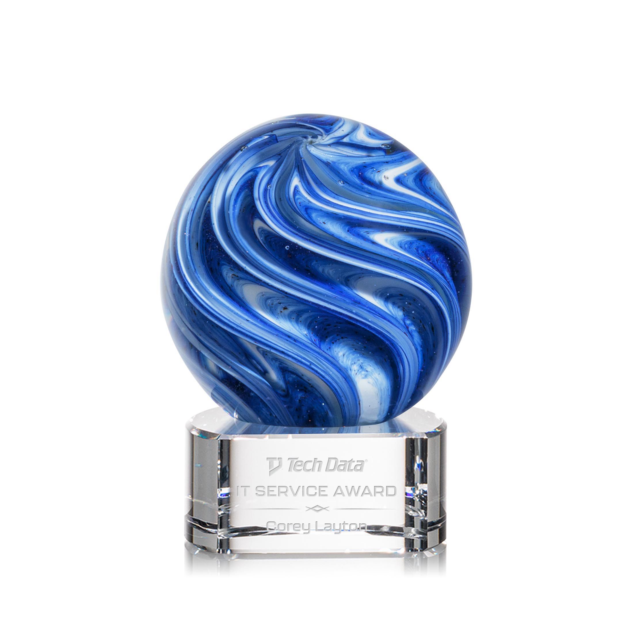 Mesmerizing swirls of blue and white make up a work of art that is the Naples Award! This fabulous marble-like art glass piece comes complete with a complimenting base for personalization. The Naples is truly a unique award that the recipient will cherish for a lifetime. Each piece is individually Hand-crafted and no two pieces are identical.