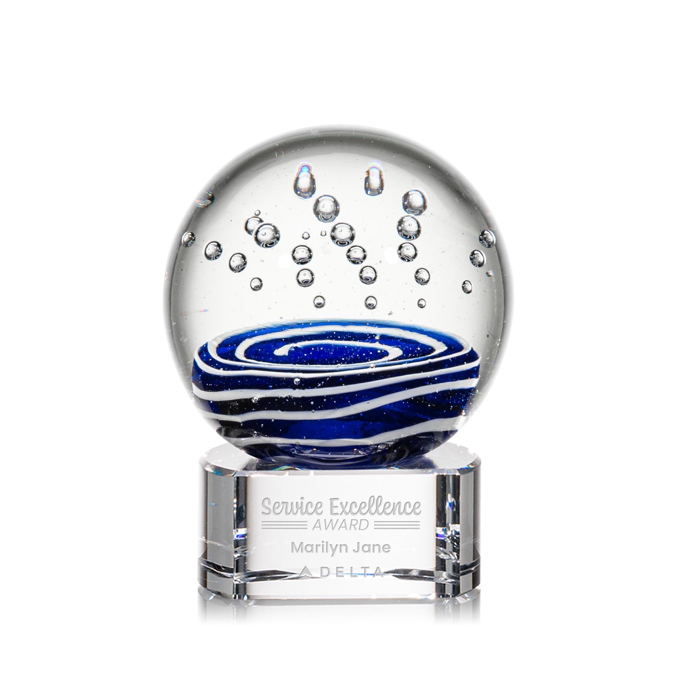 A Stunning Hand Blown work of Art. Complete with a complimenting Optical Base for personalization with a Logo or Name. Each piece is individually Hand-crafted. No two pieces are identical. All sizes are approximate and will vary from piece to piece.