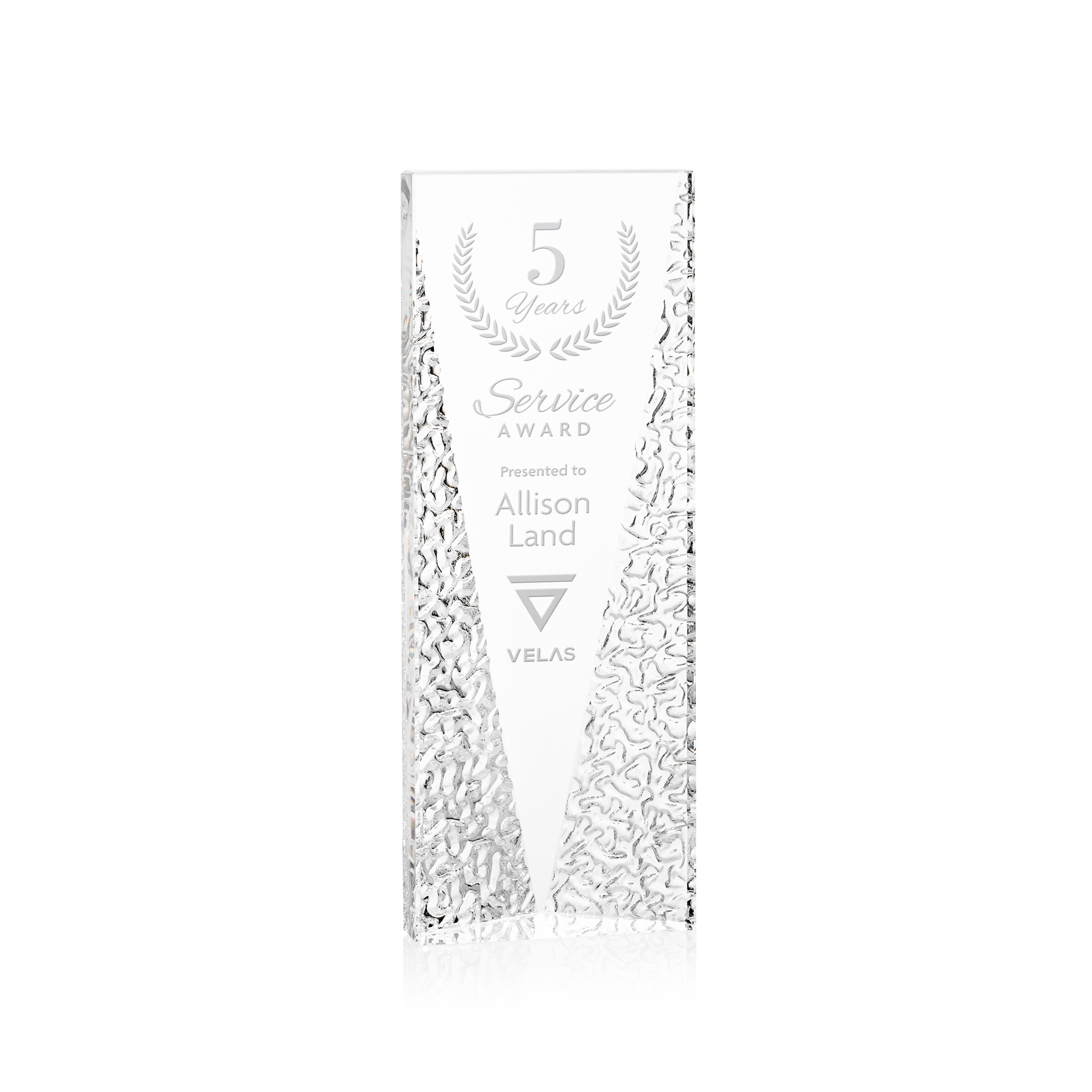 The Optical Crystal Navarro Award is a freestanding award that features stunning textured sides, creating a striking visual appeal. Ideal for recognizing Years of Service or celebrating any special occasion, it adds a sophisticated touch to any award presentation.
