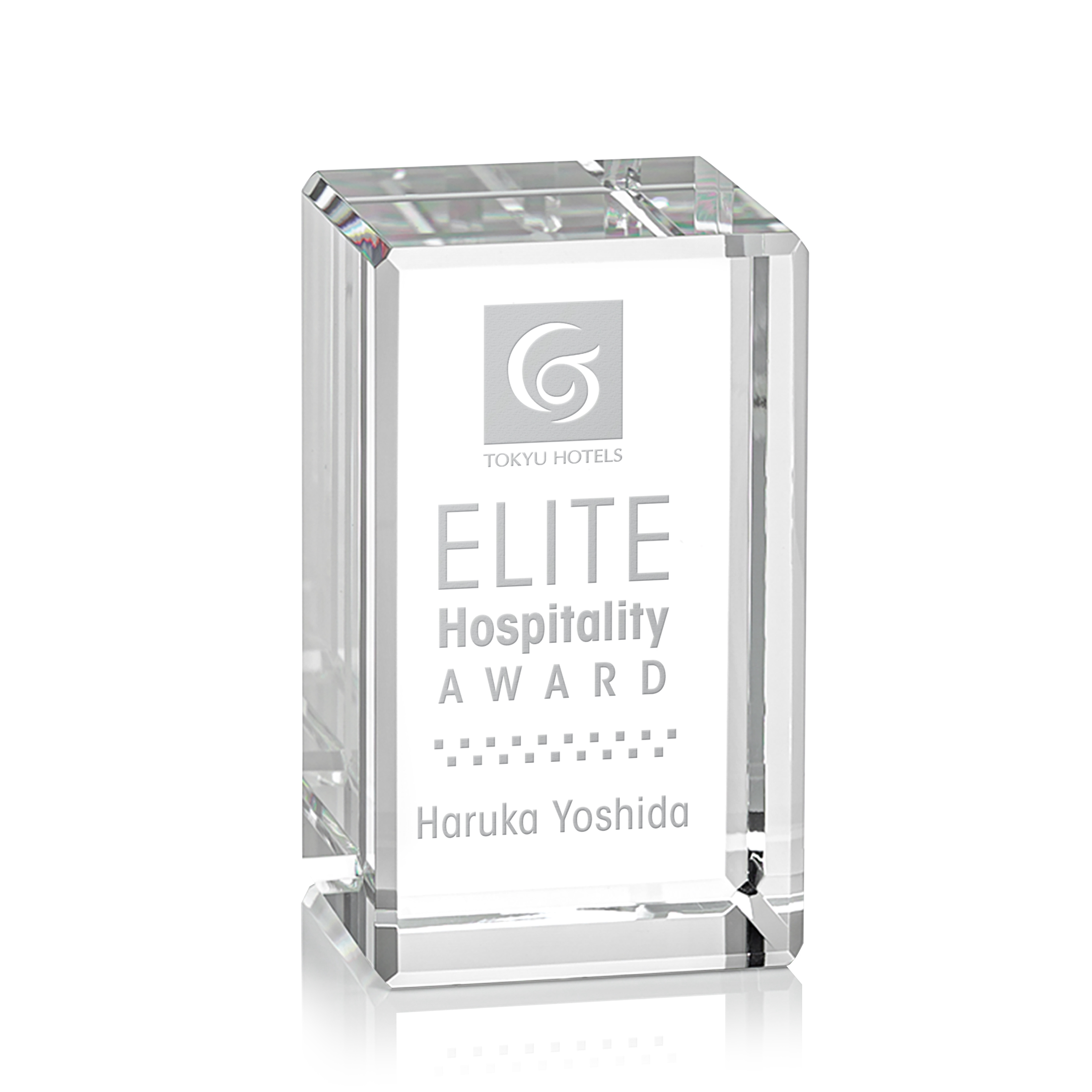 Brilliant tall Optical Crystal Columns are the perfect award to recognize a stunning achievement with light refracting through the beveled edges creating a grand and opulent award. Available freestanding and with a clear, black or blue base. See associated items.